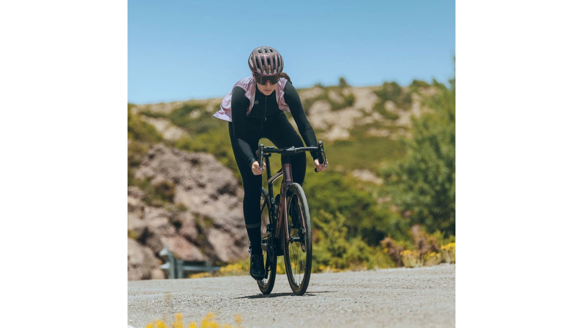 Neue Version mit anatomisch optimierter Passform und Halsausschnitt, die die Anpassungsfähigkeit und Passform für eine bessere Aerodynamik auf dem Rad verbessert. Mit einem strukturierten Gewebe auf der Vorderseite, das die Luftableitung begünstigt, und einem ultra-elastischen Gewebe im Nackenbereich.